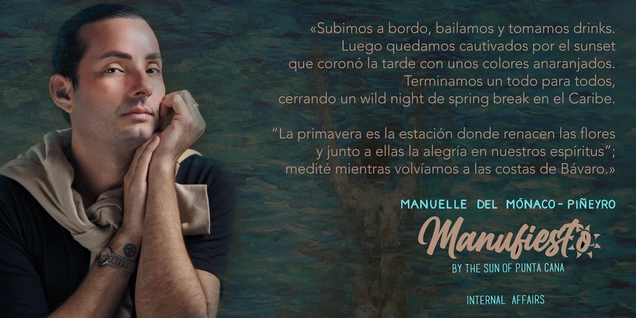 MANUEL DEL MÓNACO nació en Santo Domingo, la capital del Caribe. Es el retoño de una pareja de “freethinkers”. Desde muy pequeño fue un niño andrógino y muy amanerado. Este wild child, enfant terrible y trouble maker creció en el seno de una familia culta. Su niñez se desarrolla entre el carácter sensible y sacrificado de su madre y la actitud particular, de humor negro e indiferencia, del padre. Se pasa la vida viendo a su madre escribir, pero ésta quiso que él se dedicara al karate, natación, tenis y pelota. Por su evidente naturaleza gay, pasó de colegio católico en colegio católico. Tuvo que luchar contra toda una sociedad machista, para defender su sexualidad. Desde sus cuatro a dieciséis años, entre sus deberes escolares y su agenda se encontraban los sicólogos, quienes lo trataron por periodos de más de dos mil horas de terapias, hipnosis y acupuntura. Ya en la secundaria, escribe columnas de comentarios chistosos y actividades sociales, iniciando su pasión por la escritura. Educado en Santo Domingo, New York, Buenos Aires y París. Con una unapologetic curiosity, es un baroudeur et conquérant, que se gana a las personas con su naturalidad andrógina, porque nunca miente y obedece a su propia lógica. Narrador apasionado, retrata la realidad de su generación y la ciudad de París, usando una narrativa directa y cristalina, está en camino hacia el sol y siente que mientras más camina más se ilumina. Actualmente vive entre Santo Domingo, New York y México.